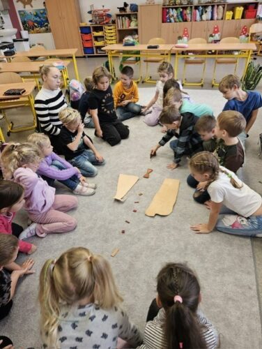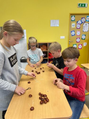 Krásné počasí jsme využívali naplno. Trávili jsme čas venku, na školní zahradě i v přírodě. Děti sbíraly kaštany a šípky, které jsme využili k výrobě podzimních dekorací a také jako pomoc pro zvířátka na zimu. Vyráběli jsme zvířátka z kaštanů, tvořili mandaly z přírodnin, a užívali si klid při relaxačních dnech.