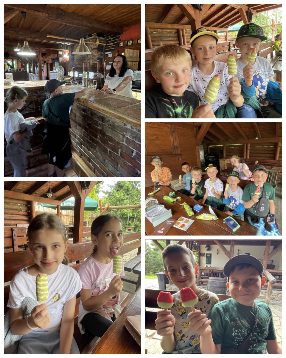 Vypravili jsme se k přehradě Baška, kde nás v Hospůdce U Studny čekalo příjemné zázemí pro naši osvěžující akci. Každé dítě si mohlo samostatně vybrat a zakoupit svůj nanuk – a věřte, že rozhodování to nebylo vůbec jednoduché. Výběr byl opravdu pestrý a chuťové pohárky všech dětí byly nadšené.