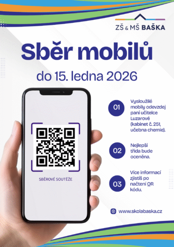Vysloužilé mobilní telefony odevzdávejte paní učitelce Magdě Luzarové do kabinetu č. 251, nebo do učebny chemie až do 15. ledna 2026. Na konci prvního pololetí vyhlásíme vítěznou třídu, která získá příspěvek na školní výlet.